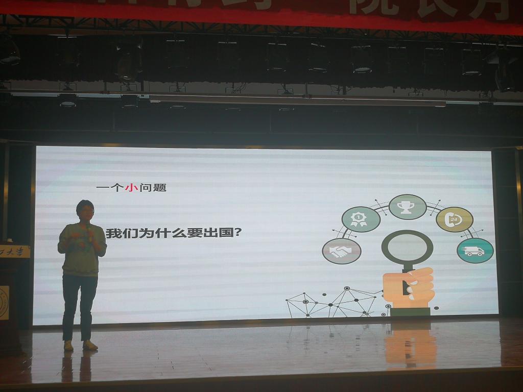 郭老師向同學們對歷年出國的情況和今年的項目進行了詳細的介紹。他從“世界的中心在哪里?你未來的理想生活是什么樣的?錢重要嗎?”三個問題,引出同學們對世界觀、人生觀、價值觀及“是否要出國”的深刻思考,以此來表明開闊視野的重要性,人生多樣的可能性,教育投入的價值性。