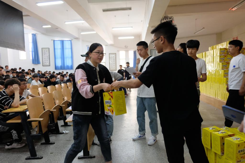 運動員們自信滿滿,他們心中的信念和夢想凝聚一體,形成了一聲聲響亮的“能動威武”。最后,學生干部為運動員們發放了慰問品。