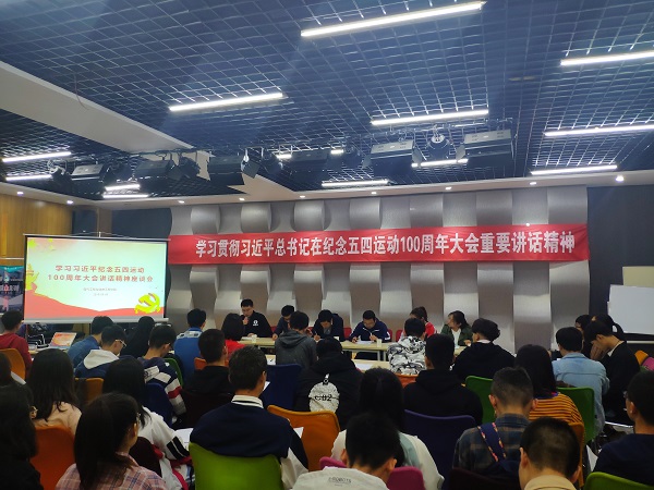 5月5日,電信學院在彭家坪校區大學生大學生職業素養提升基地培訓室召開學習習近平總書記紀念五四運動100周年大會講話精神座談會。學院黨委副書記朱毓杰,輔導員老師以及學院研究生、學生黨員、學生干部、退伍大學生代表及各年級學生代表四十余人參加了座談會。