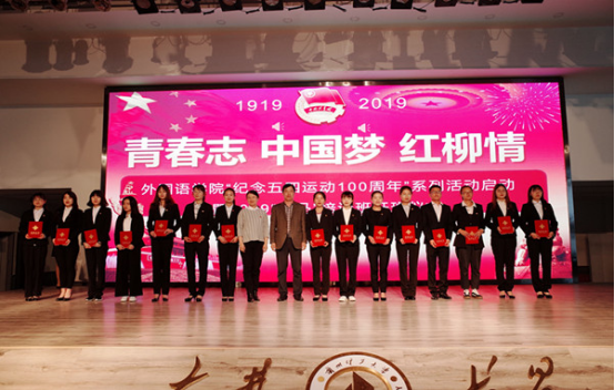 大會以“青春志·中國夢·紅柳情”為主題,表彰優秀青年團員代表,以此激勵外院學子傳承五四精神,勇擔責任,用紅柳夢鑄圓青春夢,用青春夢托起中國夢。在嘹亮的國歌聲中大會拉開了帷幕,王文霞結合習近平總書記在紀念五四運動100周年大會上對青年學子的期望寄語全院青年,同時宣布外國語學院紀念五四運動一百周年系列活動暨2019“青馬”培訓班開班正式啟動。隨后,對學院2018年“青馬”培訓中取得優秀的青年學子及31名獲得“外院好青年”的學生進行頒獎。