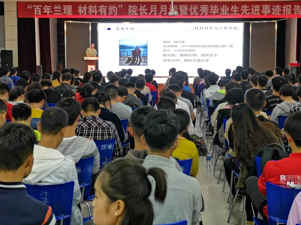 5月13日晚,材料科學與工程學院在蘭州理工大學彭家坪校區大學生活動中心舉行“百年蘭理材料有約”院長月月談活動,材料學院副院長劉德學,副書記王祎敏及全院八百余名師生參加了本次活動。