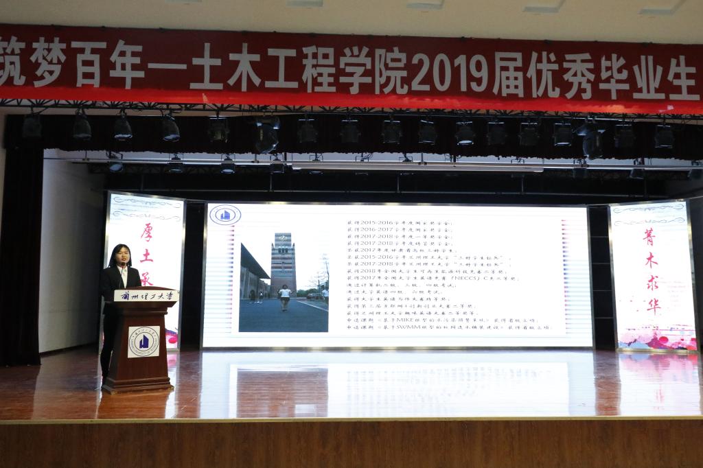夏彤彤同學圍繞班級事跡和個人事跡兩方面展開作出報告。通過自己的四年大學經歷告訴同學們要多實踐,多發展好同學情誼,要學會挖掘自己的無限可能,為土木院乃至蘭州理工大學的未來創造出更廣闊的天空。