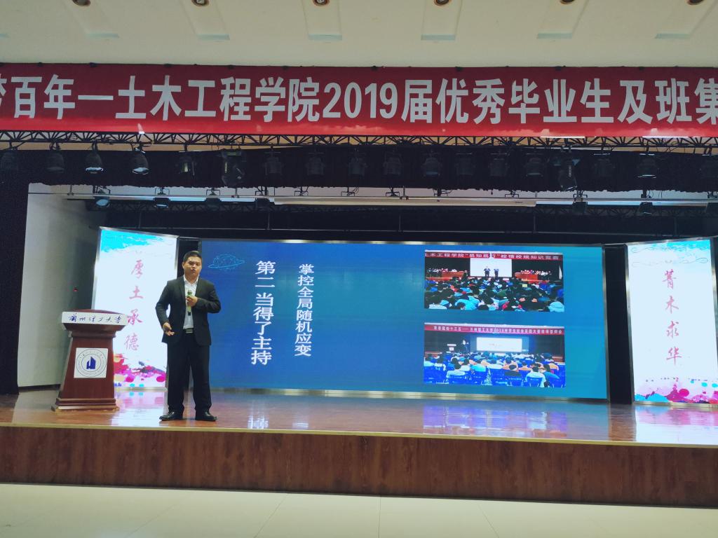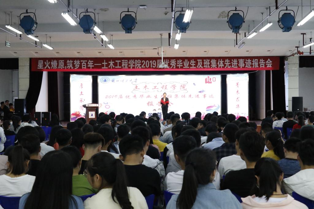 5月22日晚,土木工程學院在大學生活動中心三樓舉辦了以“星火燎原,筑夢百年”為主題的2019屆優秀畢業生及班集體先進事跡報告會。報告會邀請了2015級土木5班的夏彤彤同學、2015級土木4班的閆聰同學和2015級給排水科學與工程的余慧敏同學為在場的四百多名同學做了精彩報告和經驗分享。