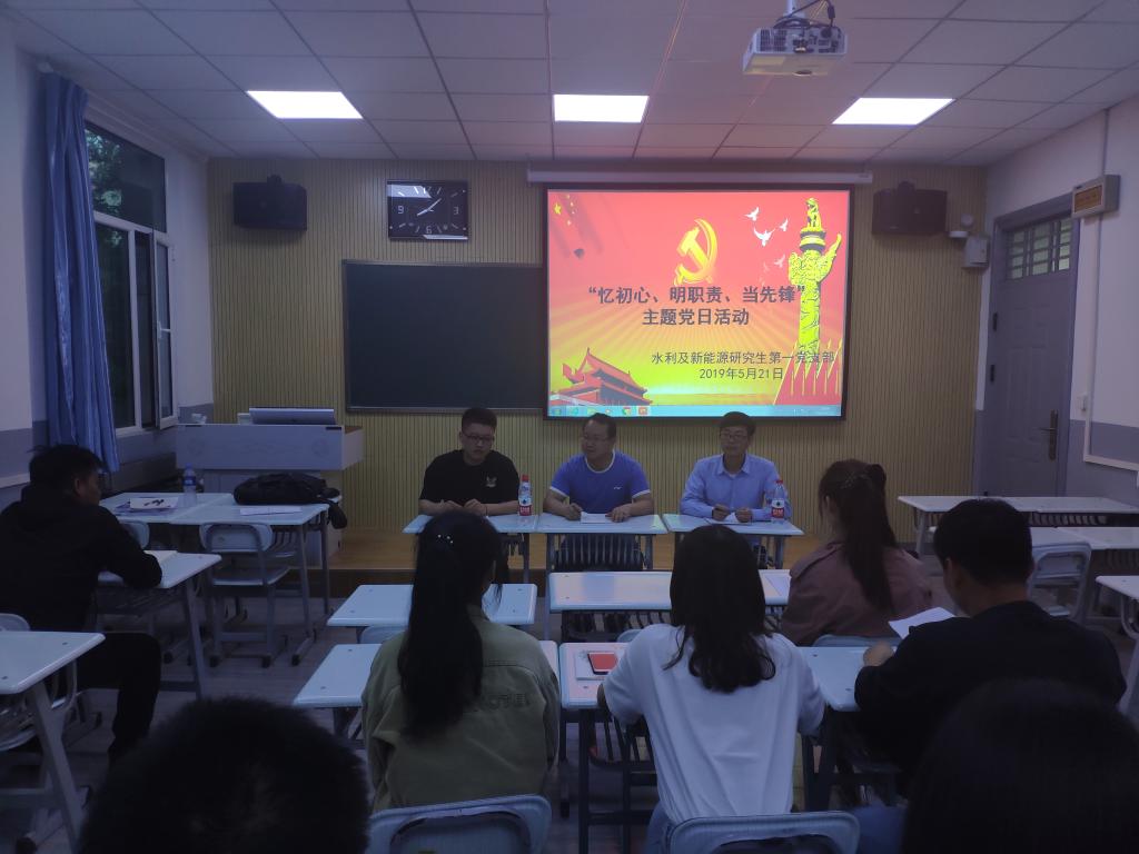 5月21日下午,水利水電及新能源第一黨支部在1號(hào)北樓203教室舉行了“憶初心、明職責(zé)、當(dāng)先鋒”主題黨日活動(dòng)。黨支部所有黨員、預(yù)備黨員及入黨積極分子參加活動(dòng),能動(dòng)學(xué)院副院長(zhǎng)李德順老師主持活動(dòng)。