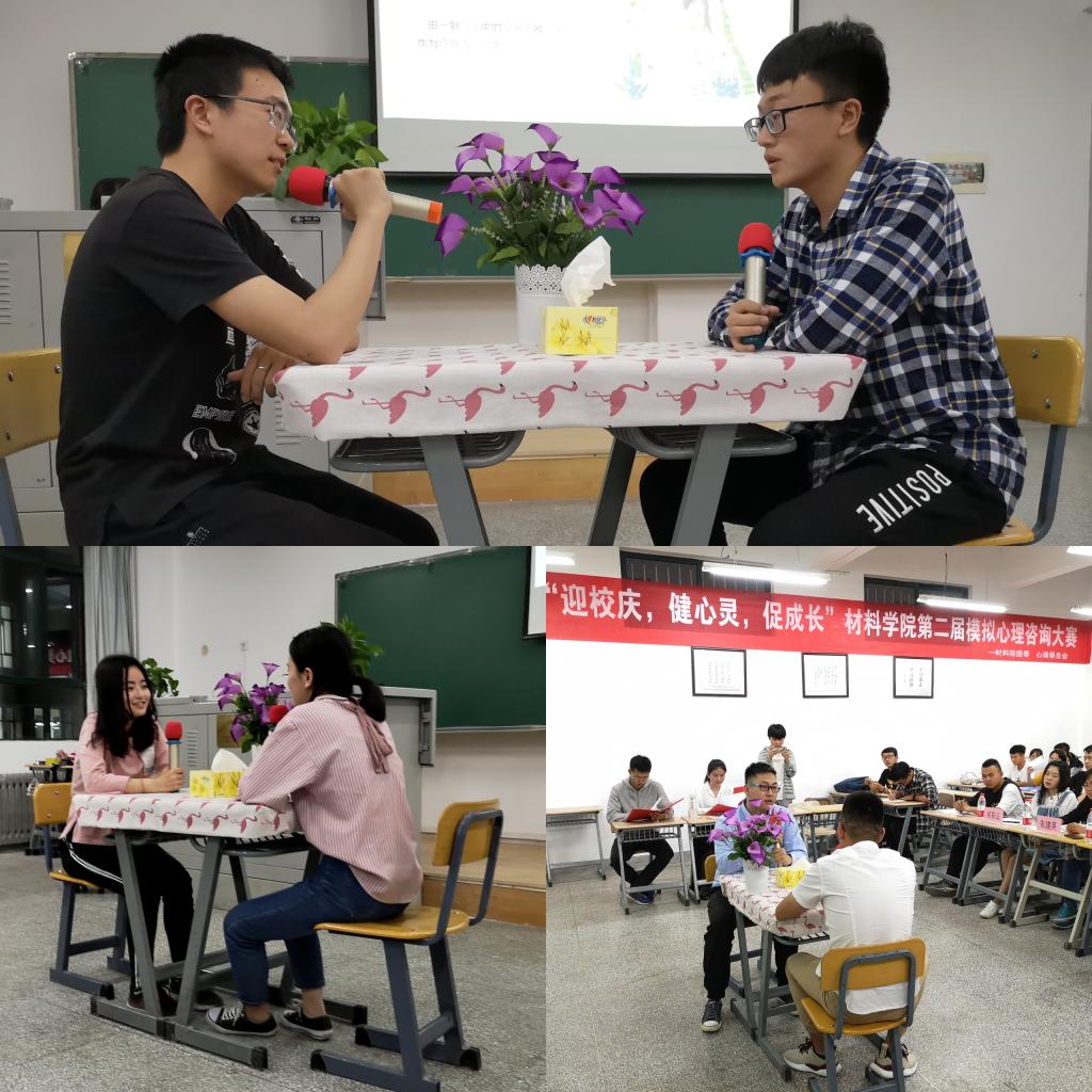 5月25日,材料學院團委、心委會在彭家坪校區2號教學樓402教室舉辦了“迎校慶,健心靈,促成長”材料學院第二屆模擬心理咨詢大賽,2018級全體心理委員參加本次比賽。