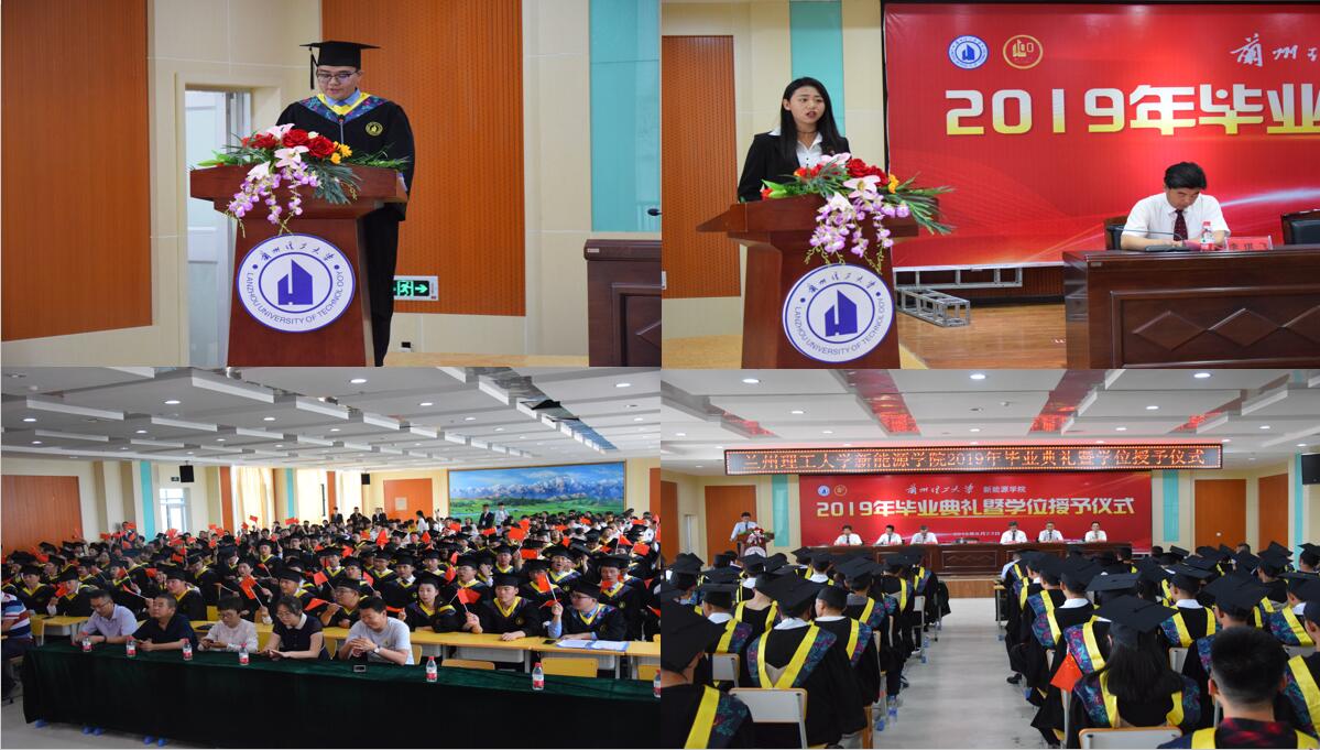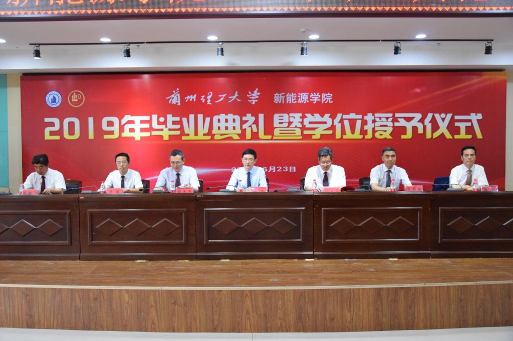 6月23日上午,蘭州理工大學新能源學院2019屆本科生畢業典禮暨學位授予儀式在酒泉校區圖書館報告廳舉行。蘭州理工大學副校長胡潔、酒泉職業技術學院副校長薛仰全參加儀式。儀式分別由新能源學院院長李策和副院長李琪飛主持。