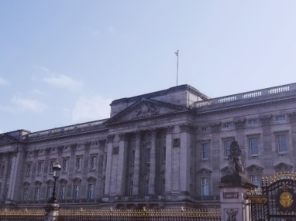 白金漢宮整體為自然的灰白色,莊重威嚴,門前廣場上的圣母雕塑儀態(tài)端莊。關于這里倫敦當?shù)赜幸粋€不成文的約定,據(jù)說當看到白金漢宮上方的旗幟升起時,就代表女王陛下此刻正在宮殿之中。