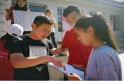 調研工作在支教工作的進行下也有條不紊的開展中,為了更好的完成調研工作,實踐團分別通過家訪、與孩子們溝通、從當地村委會干部了解實踐地的教育情況這三種形式開展調研工作。部分隊員走訪大莊村、排子山村、大古都村、高崖村等當地村民,調查村民的文化程度和留守兒童的心理健康問題以及村里的一些惠民政策在當地的實施情況。并且團隊成員向當地村民獻愛心,讓村民切實了解到十九大帶給了廣大人民群眾生活保障。