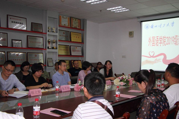 8月29日下午,外國語學院2019級新生家長見面會在蘭工坪校區綜合樓6樓視聽會議室舉行,學院黨委書記周琦、院長任育新、副院長朱景梅、副院長韓立俊、黨委副書記焦娜、輔導員和部分新生家長參加見面會,會議由黨委副書記焦娜主持。