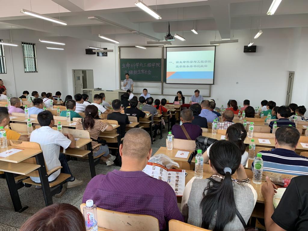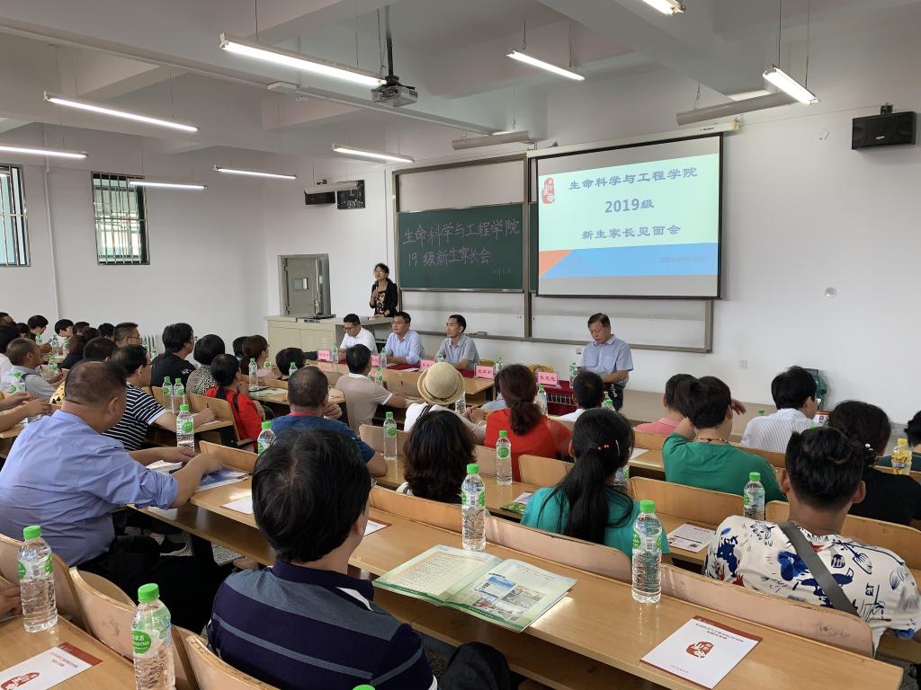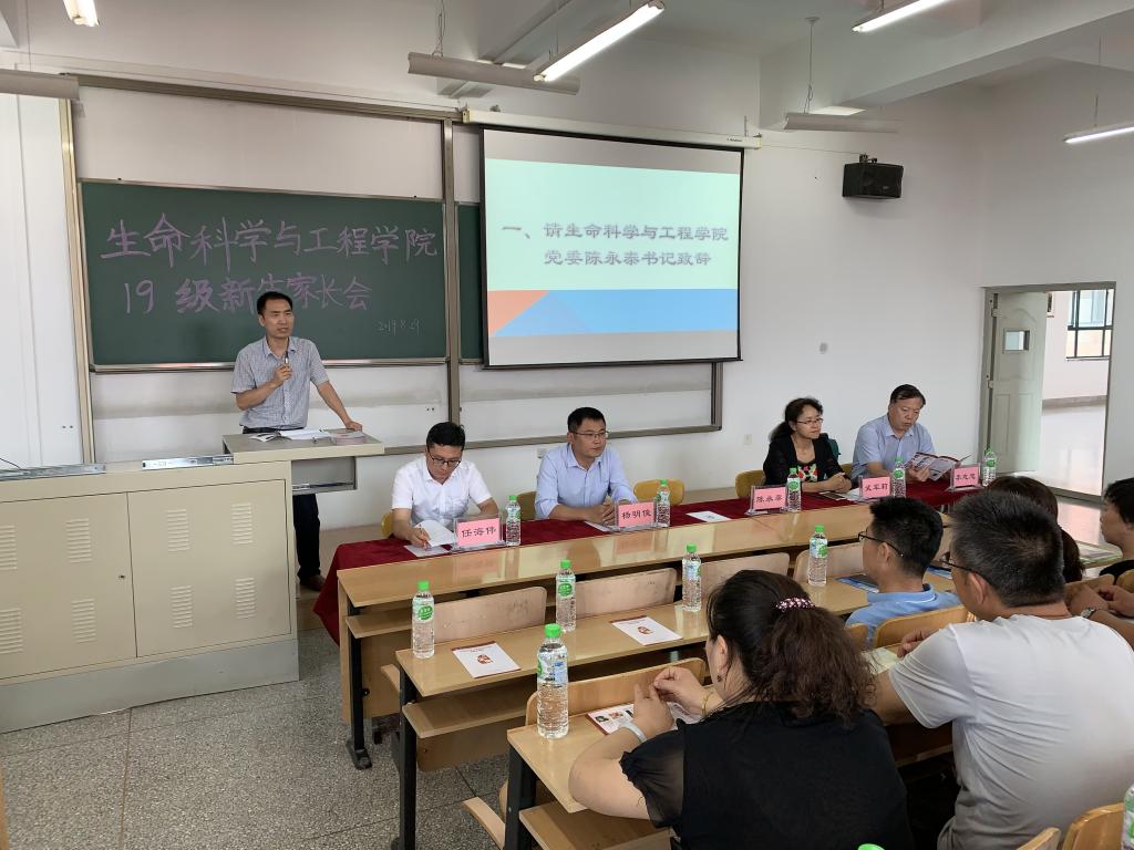 桂月之末,初秋乍來。蘭州理工大學迎來了忙碌的開學季,來自全國各地的2019級新生為百年工大注入新鮮血液。8月29日下午,生命科學與工程學院新生家長會在彭家坪校區抒望樓如期舉行。學院黨委書記陳永泰、副院長李志忠、楊明俊、任海偉、全體2019級新生班主任和輔導員及在校的2019級新生家長參加,d黨委副書記武軍莉主持會議。
