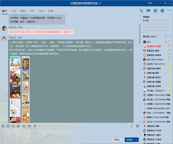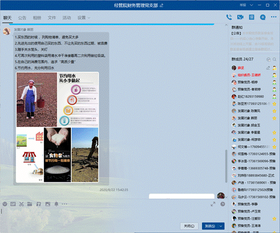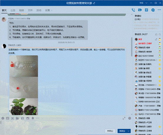為了積極響應習近平總書記對制止餐飲浪費行為作出的重要指示,在支部內加強宣傳教育,切實培養節約習慣,營造浪費可恥、節約為榮的氛圍,經管學院財務管理本科生黨支部于2020年8月17日召開“厲行節約,從我做起”主題黨日活動,每位黨員將身邊日常學習生活中能夠進行的點滴節約行為進行了匯總,做出了表率承諾,積極營造節約氛圍,形成長效機制,厲行節約。