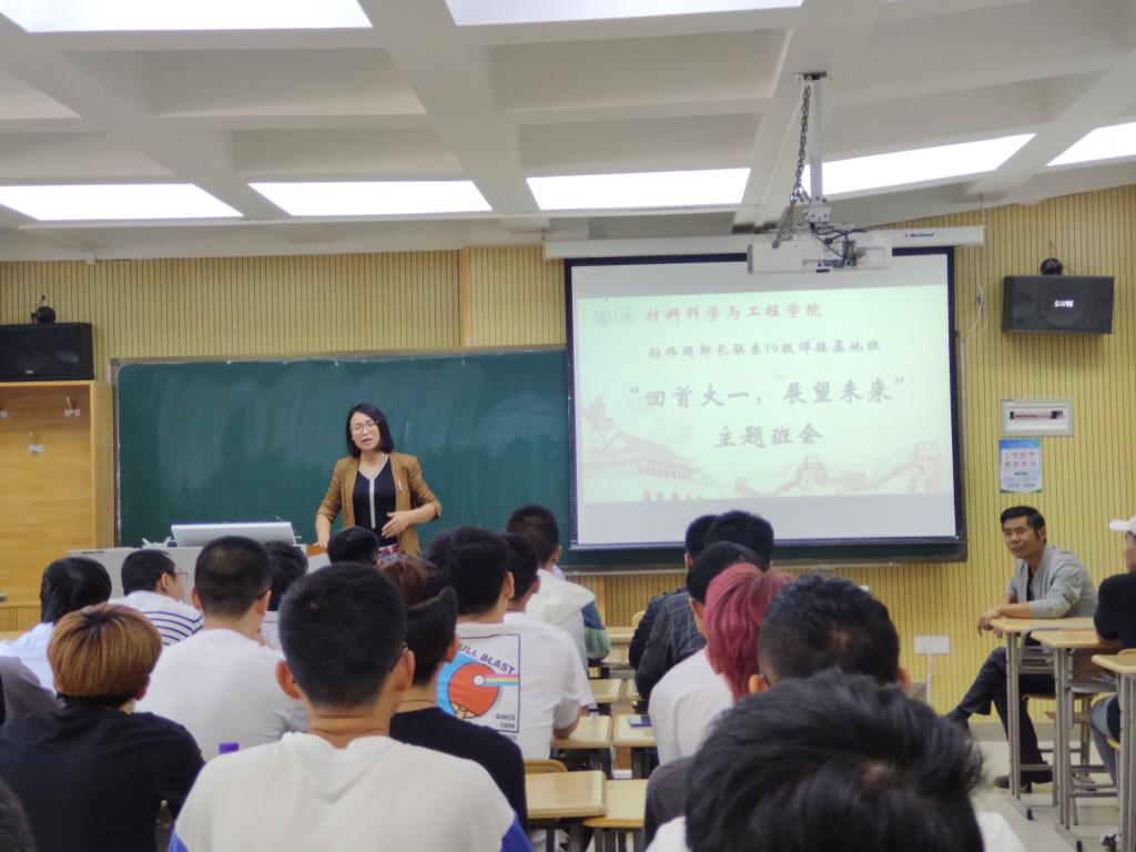 王祎敏為班級同學講解了學院班主任的調整是材料學院落實黨團班一體化建設,針對各年級學生不同階段的特點,對于班主任的結構進行調整,在調整后一年級的班主任全部由學院輔導員老師擔任,幫助大一新生更快更好地適應大學生活,大二開始,班主任老師就會調換為各專業的任課老師,引導高年級的同學盡早接觸專業知識,了解專業方向,規劃大學成長成才的發展。