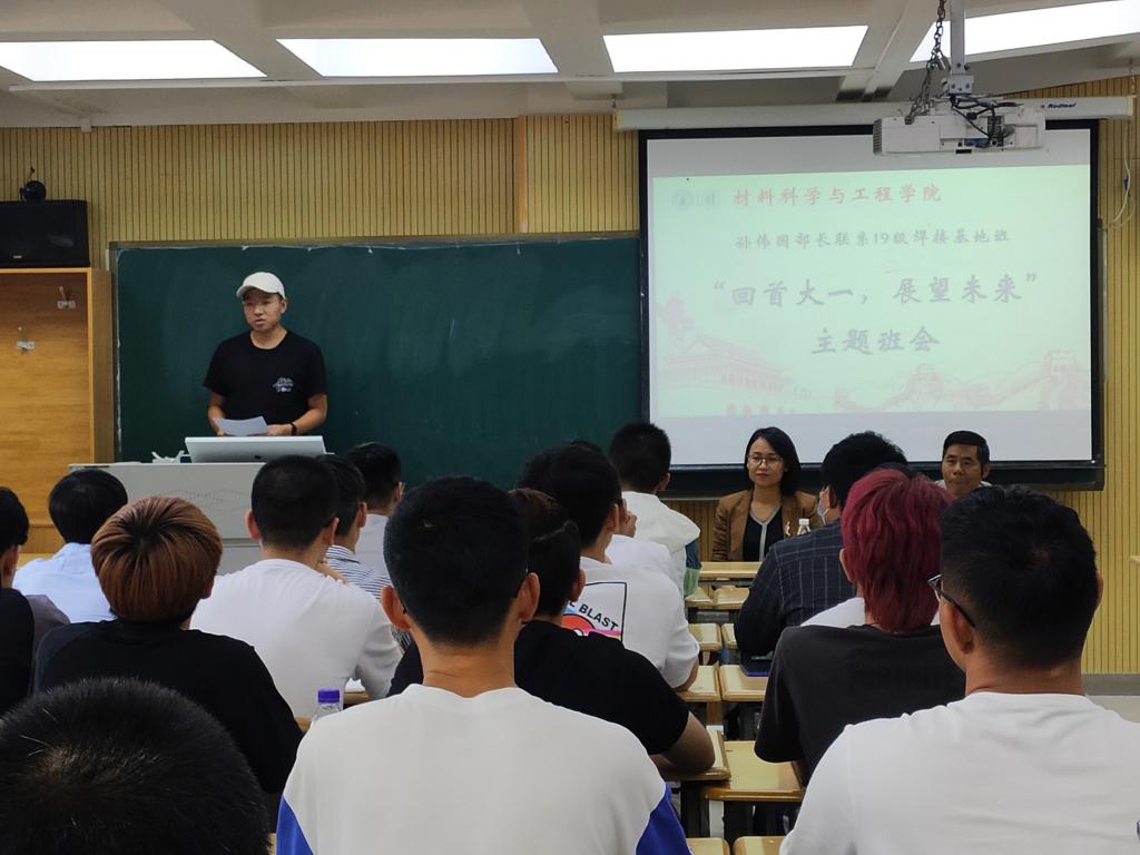 8月27日上午,材料學院2019級焊接技術與工程紅柳基地班在蘭工坪校區1號南樓101教室開展了以“回首大一、展望未來”為主題的班會,學校黨委學生工作部(學生處、易班、武裝部)部長孫偉國走入班級,參加中干聯系班級活動,與同學們深入交流。材料學院黨委副書記王祎敏、學生辦主任楊志忠、2019級焊接技術與工程紅柳基地班班主任王晟、輔導員張忠杰、汪甜甜參加本次會議,會議由團支書姚安坤主持。