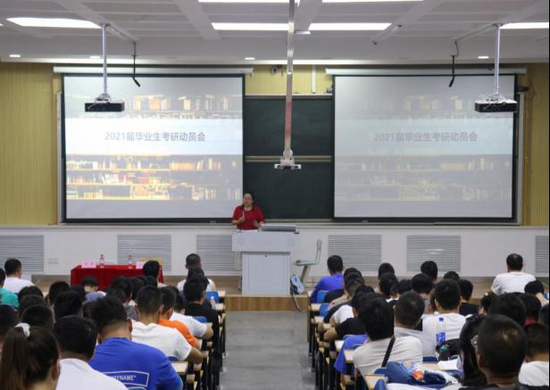 李萍作考研動員宣講。她結合往年考研情況及學院實際,從報考學校、學科、復習準備等方面進行了細致講解,幫助學生理清考研思路,提供全面和可實際操作價值的參考。她叮囑,對自身的定位很關鍵,無論是考研還是就業,想要獲得成功就必須腳踏實地、努力進取。