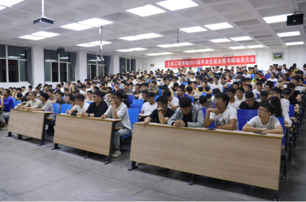 為了進一步提升人才培養水平和就業質量,增強2021屆畢業生的考研熱情與就業積極性,正確認識就業和考研形勢,8月28日晚,土木工程學院在蘭工坪校區舉行了畢業生就業暨考研動員大會。土木工程學院黨委副書記王儀杰、副院長李萍、2017級輔導員及2021屆全體畢業生參加了本次大會。
