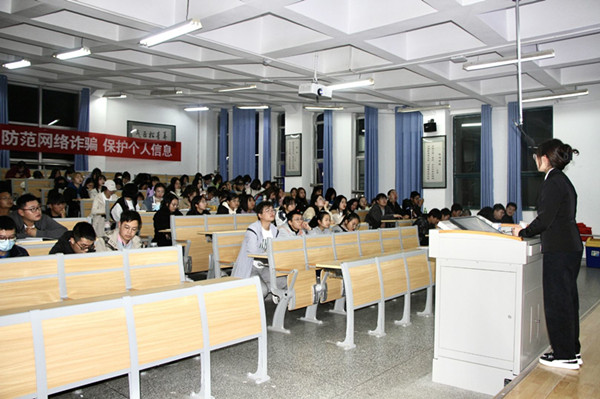 宣講團分析了校園電信網絡詐騙案件發案類型、受害群眾年齡和性別,并結合網絡兼職刷單詐騙、網絡購物詐騙、網絡貸款類詐騙、網上交友誘導透支理財詐騙、冒充熟人及公檢法詐騙等詐騙類型和案例,以視頻、講解等方式全面深入的總結了犯罪分子的作案手段、受害人上當受騙的心路歷程、防范電信網絡詐騙的方法和被騙后應采取的補救措施。