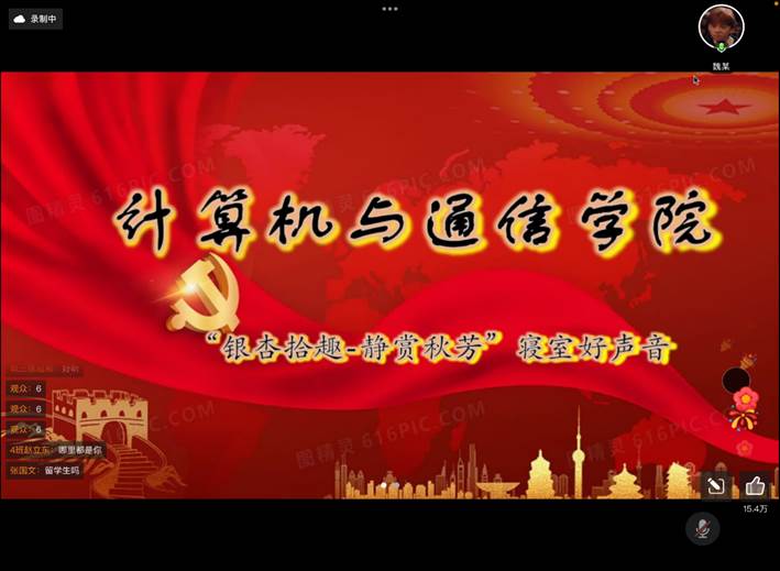計(jì)通學(xué)院舉行“銀杏拾趣 靜賞秋芳”系列活動(dòng)之 “寢室好聲音”線上活動(dòng)