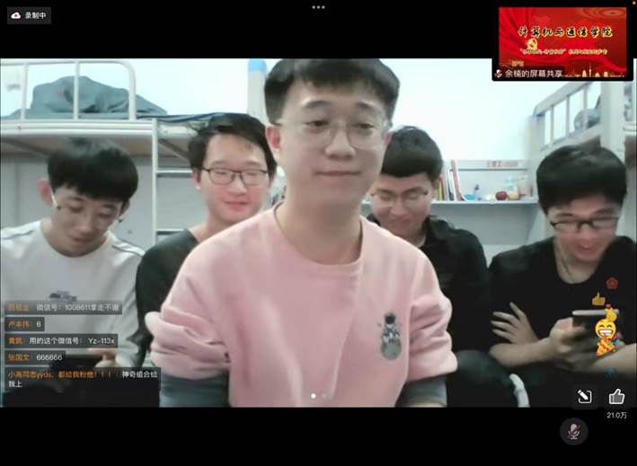 整個(gè)活動(dòng)獲點(diǎn)贊數(shù)45.2萬,互動(dòng)留言1.166萬條,累計(jì)在線1000余人,包括其它學(xué)院、紅柳藝術(shù)團(tuán)等多名同學(xué)觀看了活動(dòng)。活動(dòng)取得了圓滿成功,收到了師生的廣泛好評(píng)。
