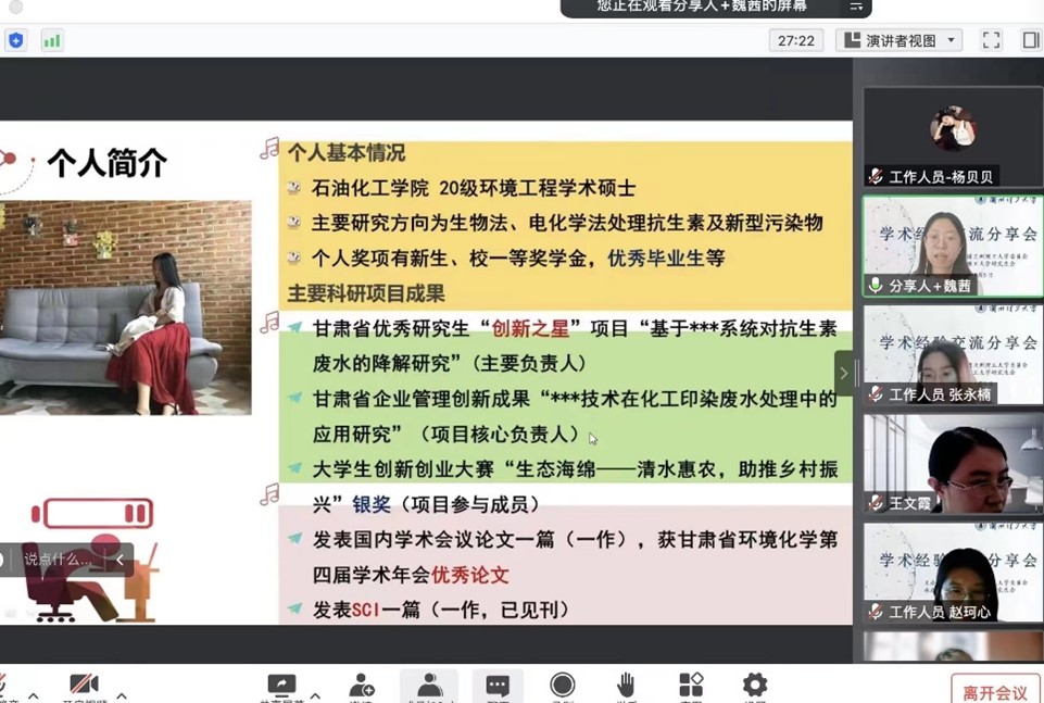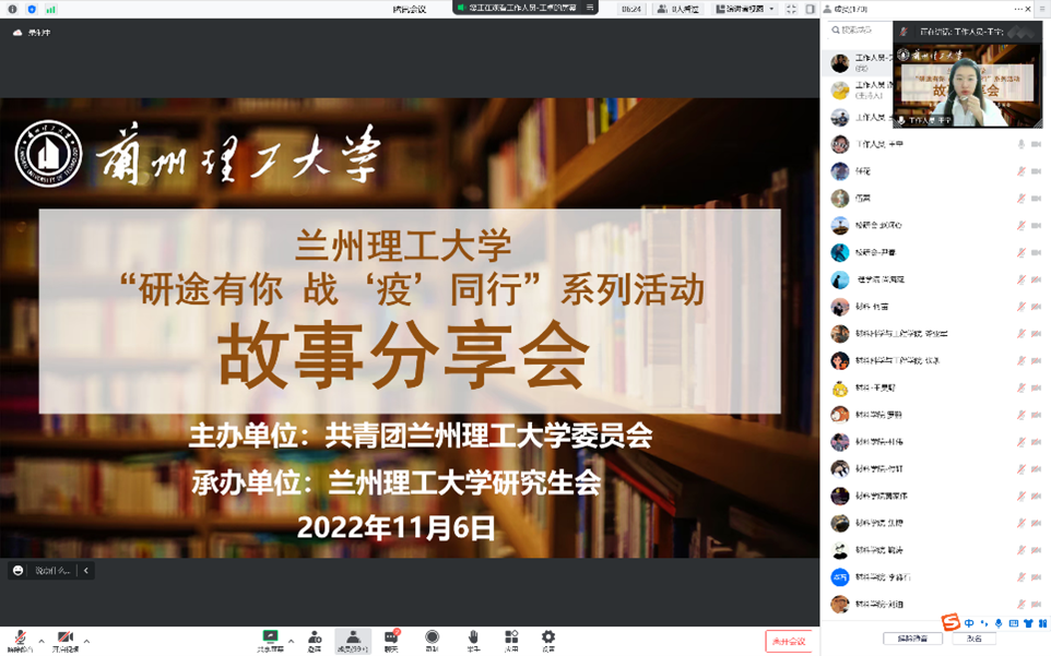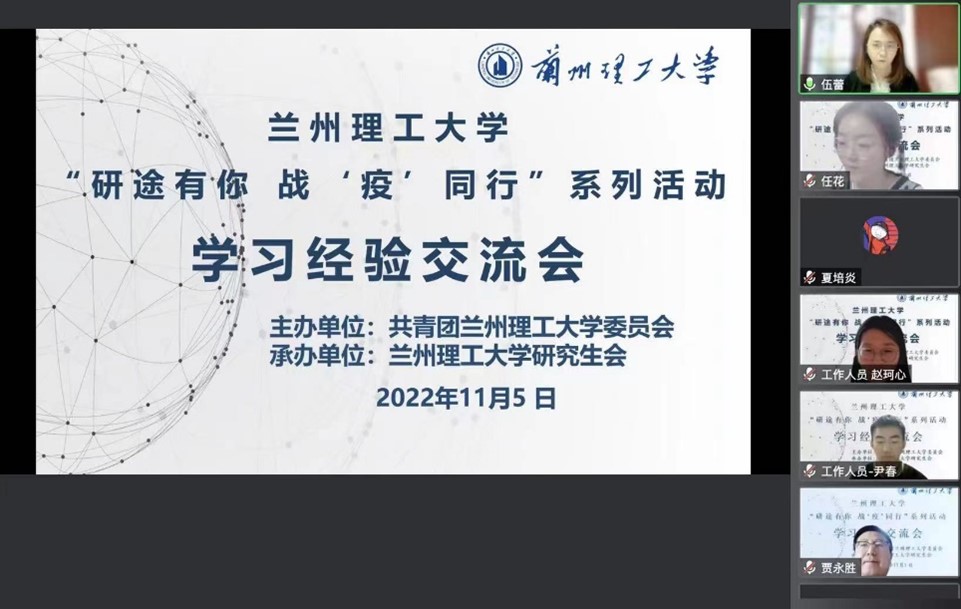 為提升我校研究生的學(xué)習(xí)興趣和學(xué)術(shù)科研能力,豐富課余文化生活,引導(dǎo)同學(xué)們積極面對生活,傳遞抗疫正能量,11月5日至6日,由校團委主辦,校研究生會承辦的“研途有你 戰(zhàn)‘疫’同行”系列活動”之研究生學(xué)習(xí)經(jīng)驗交流會和故事分享會在線上成功舉辦。校團委副書記王文霞、校團委伍蕾老師、經(jīng)濟管理學(xué)院輔導(dǎo)員賈永勝老師參加活動。