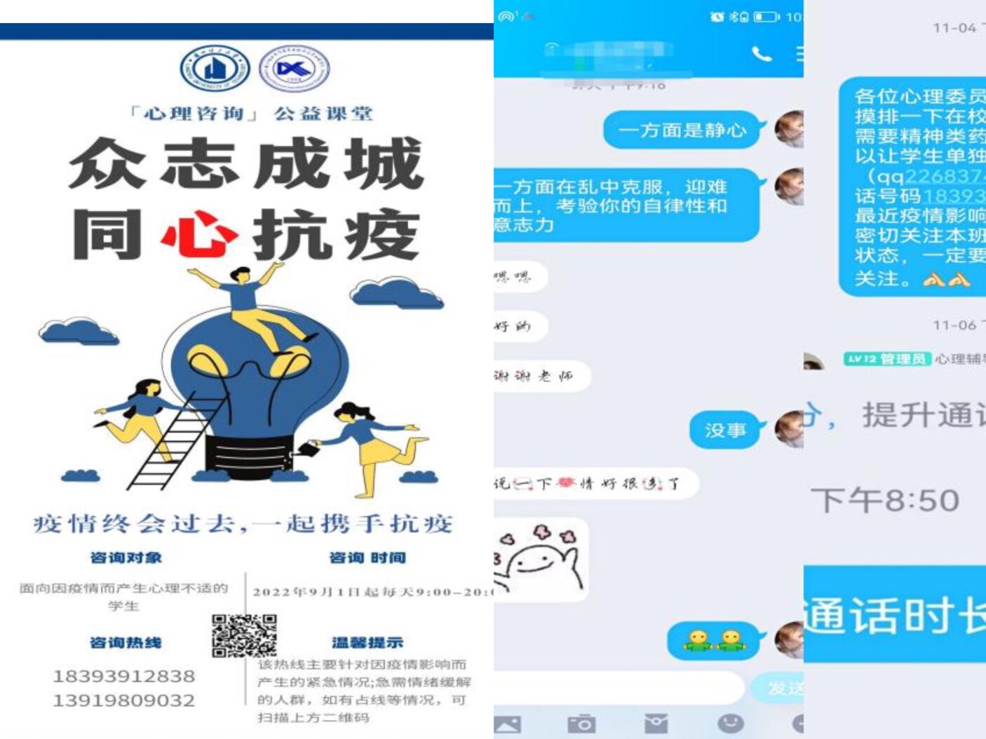 連日來,電信學院心理輔導站老師開通線上心理咨詢熱線服務,以電話、qq等形式為有需要的學生提供幫助。