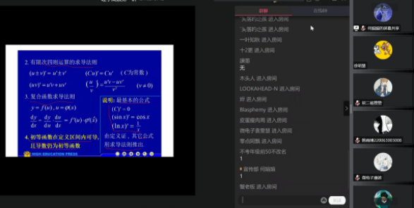 本次會議由理學院2021級應用物理學專業陳子洋同學主持。陳子洋從導數的概念、函數的求導法則、高階導數、隱函數和參數方程求導相關變化率四個方面展開了詳細的講解。通過復習概念、習題講解與當堂練習相結合的方式,來幫助大一的同學們更好的消化高數知識。最后,主講人對所有內容進行小結,以此來進一步鞏固所講知識。