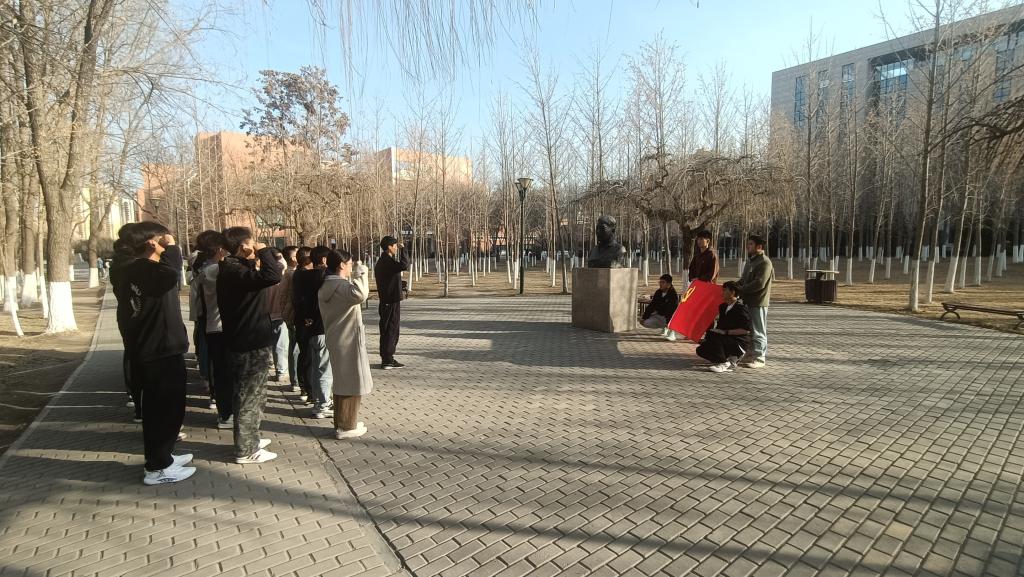 活動開始,支部書記董季澄帶領大家打掃了玉川廣場衛生——清掃了地面落葉,擦拭了魏玉川銅像。隨后,大家整齊列隊,面向玉川銅像默哀。默哀畢,全體黨員莊重的向玉川學長敬獻鮮花。之后,支部書記董季澄同志帶領全體黨員誦讀了《玉川頌》。全體黨員在鮮紅的黨旗下,由支部書記領誓,全體黨員佩戴黨徽,緊握右拳,面向黨旗莊嚴宣誓,重溫入黨誓詞。在錚錚的誓言中,全體黨員在黨旗下接受了心靈的凈化和洗禮,重溫入黨宣誓時的莊嚴承諾和堅定決心,鼓起邁向新學期的精氣神。