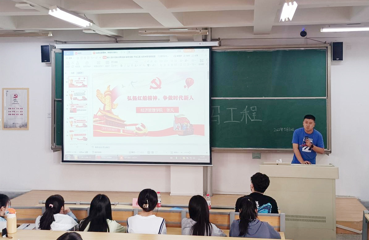 為迎接黨的二十大勝利召開,恰逢共青團成立100周年,為弘揚優(yōu)良傳統(tǒng),傳承紅色基因,增強黨的意識,本著學(xué)史明理、學(xué)史增信、學(xué)史崇德、學(xué)史力行的要求。2022年5月10日下午,經(jīng)濟管理學(xué)院于彭家坪校區(qū)一號樓204教室舉行“弘揚紅船精神,爭做時代新人”為主題的黨史教育。輔導(dǎo)員張凡老師,2018級學(xué)生程一軒,以及青馬培訓(xùn)學(xué)員和經(jīng)濟管理學(xué)院組織部工作人員參加了此次活動。