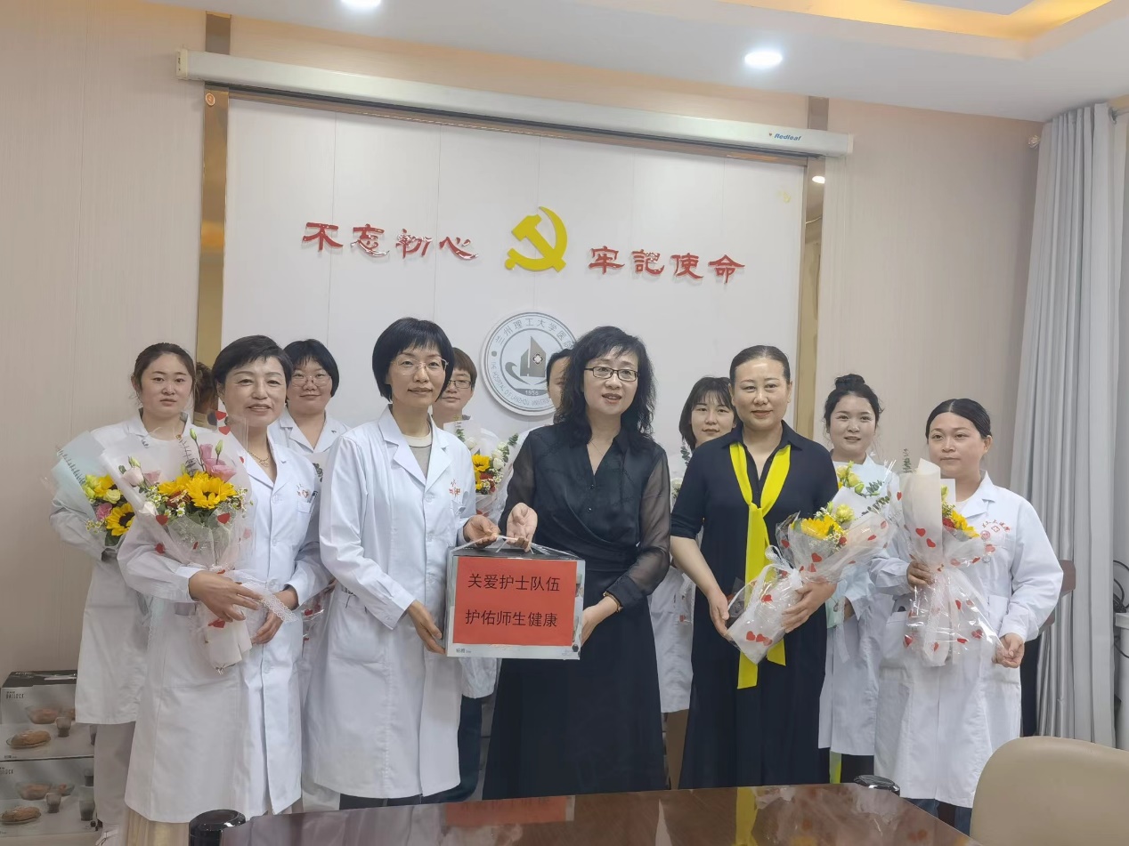 校工會常務副主席田波一行代表學校向天使們送來了鮮花和慰問品,并表達了節日的祝福。田波在慰問致辭中說,"護士是沒有翅膀的天使,是真善美的化身",在第111個國際護士節到來之際,向校醫院白衣天使致敬,祝美麗的白衣天使節日快樂!2020年新冠疫情發生以來,特別是去年10月和今年3月兩次疫情的突襲,校醫院天使們化身“大白”,舍小家為大家,沖鋒在前,無所畏懼,完成了全校師生及家屬7.6萬余人次的疫苗接種,40多萬人次的核酸采樣工作,為守護師生健康和生命安全做出了貢獻!希望天使們繼續秉承南丁格爾精神,堅持職業操守,以較高的專業技能和優質的服務,為保障學校師生健康做出更大的貢獻。