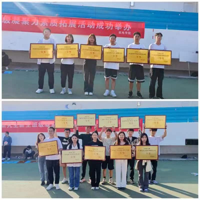 研究生新生班級凝聚力素質拓展活動包含同心合力、勇往直前、風雨同舟、一鼓作氣、青春飛揚五個項目。活動過程中,各班級研究生齊心協力,團結合作,相互鼓勵,展現出研究生新生競技場上的卓越表現和精神風貌。緊張熱烈的比賽后,最終根據各環節的比賽得分,最終評選出班級一等獎6個,二等獎10個,三等獎16個,精神文明獎8個,優秀獎7個。