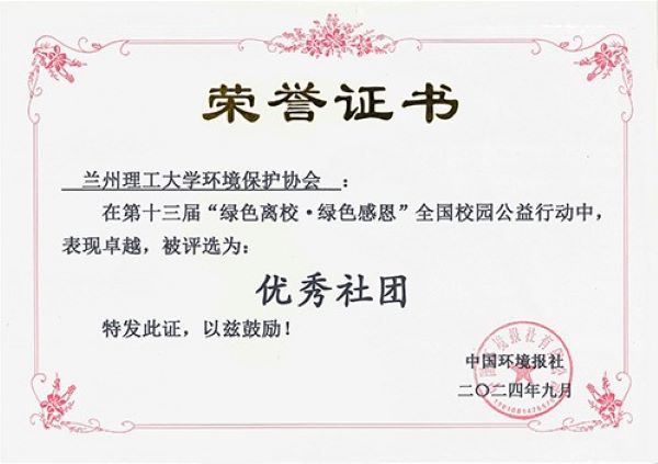 近日,由中國(guó)環(huán)境報(bào)社、中國(guó)環(huán)境網(wǎng)、物物福公益聯(lián)合發(fā)起主辦,中國(guó)好公益平臺(tái)、中國(guó)青年網(wǎng)發(fā)現(xiàn)頻道特別支持的第十三屆“綠色離校·綠色感恩”全國(guó)校園公益行動(dòng)評(píng)選結(jié)果揭曉,蘭州理工大學(xué)環(huán)境保護(hù)協(xié)會(huì)獲評(píng)優(yōu)秀社團(tuán),協(xié)會(huì)會(huì)員于磊、李文博、金小慧、薛通4位同學(xué)獲評(píng)優(yōu)秀志愿者。