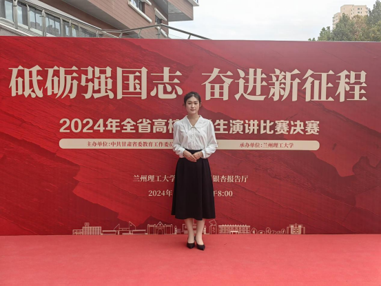 11月9日,由中共甘肅省委教育工作委員會、甘肅省教育廳主辦,我校承辦的“砥礪強國志 奮進新征程”全省高校大學生演講比賽決賽在我校彭家坪校區大學生活動中心紅柳劇院舉行。經過激烈角逐,我校材料學院22級材料成型及控制工程專業的劉珂榮獲二等獎,能動學院22級新能源科學與工程專業的趙武嬌獲優秀獎。