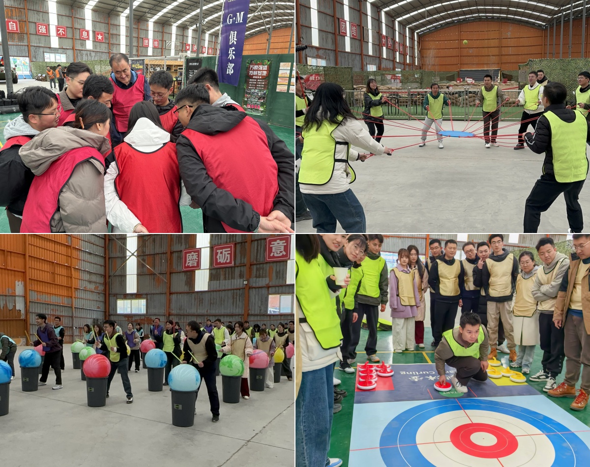 在素質拓展環節,全體人員分成八支隊伍,圍繞團隊溝通協作,開展了破冰活動、同心鼓、超級有氧鼓、旱地冰壺等活動。八支團隊激烈角逐,現場氣氛熱烈,情緒高漲。隊員們積極參與,巧用智慧、拼搏競爭,在展現團隊精神的同時,也感受到克服困難的愉悅,經歷了一場減壓與成長之旅。