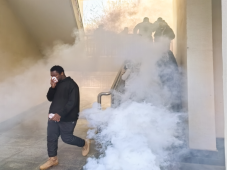 演練過程中,首先模擬火災現場,組織開展應急疏散演練,同學們低頭彎腰,用濕巾捂住口鼻迅速有序地按照指定路線應急疏散。隨后開展滅火實戰演練,消防工作人員現場示范滅火器的使用方法,并指導同學們進行滅火。