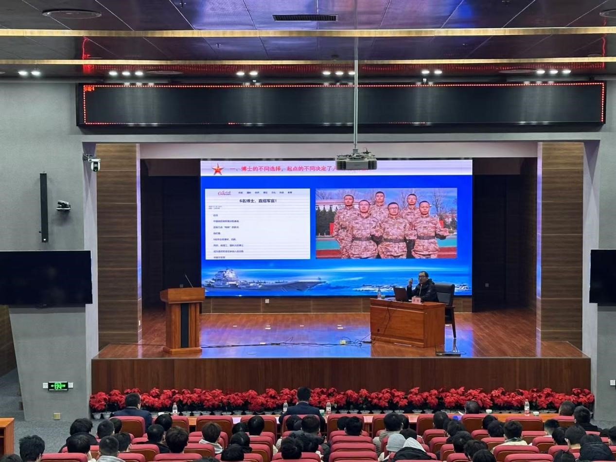 為深入貫徹落實(shí)習(xí)近平強(qiáng)軍思想,激發(fā)學(xué)生愛國情懷,鼓勵(lì)學(xué)校更多有志青年攜筆從戎,投身軍營建功立業(yè),12月22日晚,學(xué)校在彭家坪校區(qū)圖書館報(bào)告廳舉辦“老兵的故事”征兵動(dòng)員講座。本次講座由原解放軍陸軍指揮學(xué)院軍隊(duì)政工系副教授、教研室主任龔健主講,主題是《從戰(zhàn)士到博士,一個(gè)老兵對(duì)人生之路的思考》。學(xué)院征兵工作負(fù)責(zé)人和2025屆畢業(yè)班生300余人參加。