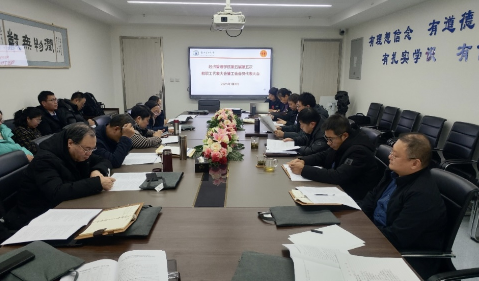 1月3日,經濟管理學院第五屆教職工代表大會暨工會會員代表大會第五次會議在問鼎樓南507會議室順利召開。學院黨政領導班子全體成員、教代會正式代表參加,會議由學院黨委書記穆龍主持。