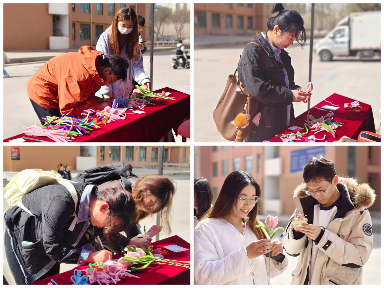 結(jié)合“三八”國(guó)際勞動(dòng)?jì)D女節(jié),學(xué)院面向全體女性學(xué)生,在一站式學(xué)生社區(qū)舉辦“芳華綻放”關(guān)愛活動(dòng)。活動(dòng)現(xiàn)場(chǎng)設(shè)置“雙視角創(chuàng)作”環(huán)節(jié),男生組構(gòu)思創(chuàng)意造型、女生組精雕花瓣細(xì)節(jié),協(xié)作完成花藝作品,培養(yǎng)團(tuán)隊(duì)精神。志愿者們將20朵立體郁金香制成“心愿盲盒”祝福卡,點(diǎn)綴于教學(xué)樓、學(xué)院樓等場(chǎng)所,傳播優(yōu)秀文化。