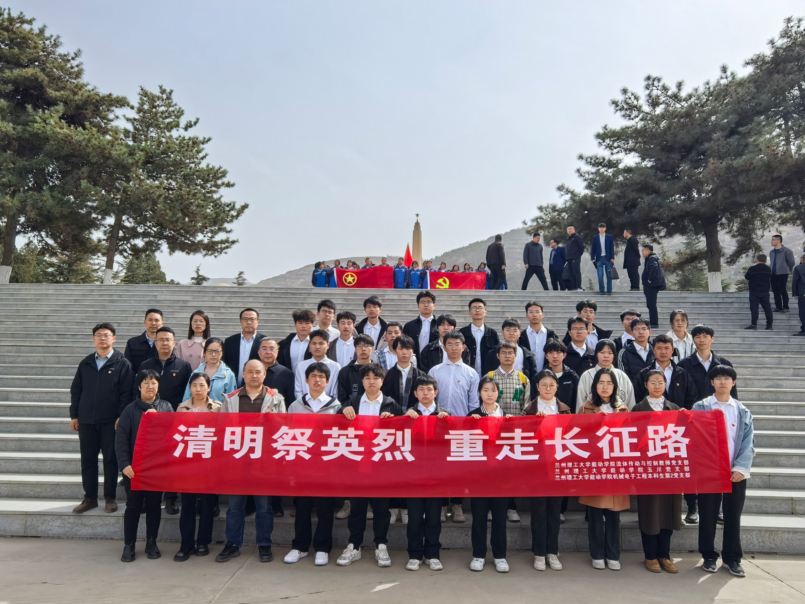 4月1日下午,能動(dòng)學(xué)院流體傳動(dòng)與控制教師黨支部與玉川黨支部40余名師生黨員前往蘭州烈士陵園開展“清明祭英烈 重走長征路”支部共建主題實(shí)踐活動(dòng)。