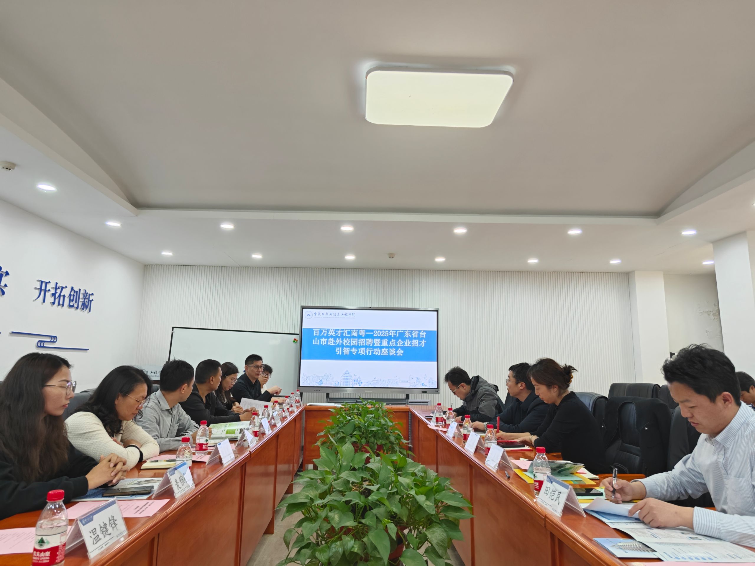 4月16日上午,臺山市人力資源和社會保障局就業創業促進股股長蘇惠武、全國博士后創新(江門)示范中心臺山分中心主任李星元一行來校進行人才交流座談并舉行人才招聘會,此次會議由劉煒主持,學生就業創業服務中心副主任宋嬋、電信學院黨委副書記劉煒,材料學院、機電學院輔導員參加了座談會。