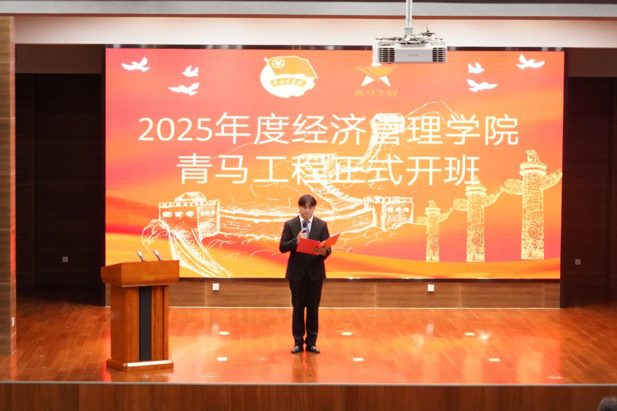 近日,經濟管理學院在彭家坪校區問鼎堂106報告廳舉行“經濟管理學院2025年青年馬克思主義者培養工程”開班儀式。學院黨委書記張清輝、黨委副書記王翀、團委書記張凡及全體輔導員、2025年青馬學員、新發展團員及學生骨干參加活動。