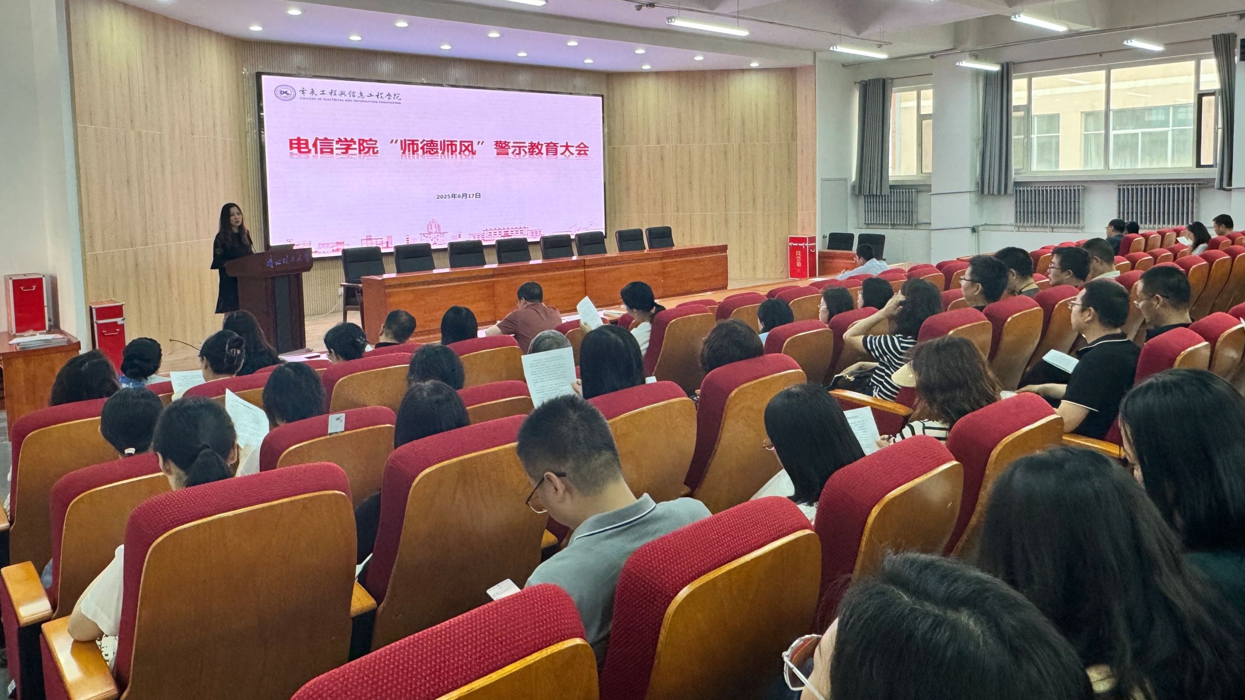 為深入貫徹中央八項規定精神學習教育,進一步加強師德師風建設,引導廣大教師堅守教育初心、踐行育人使命,6月17日電信學院召開師德師風警示教育大會。學院全體教職工參加會議,會議由學院黨委書記楊雅瓊主持。