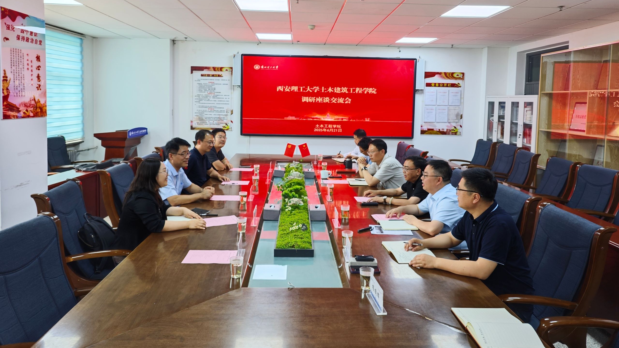 6月21日,西安理工大學土木建筑工程學院黨委書記劉峰、院長趙欽、巖土工程研究所所長姚曉亮等一行來土木工程學院調研交流。學校國際合作部部長馮濤、學院黨委書記趙煒、院長殷占忠、副院長周鳳璽、王亞軍等參加會議。會議由殷占忠主持。