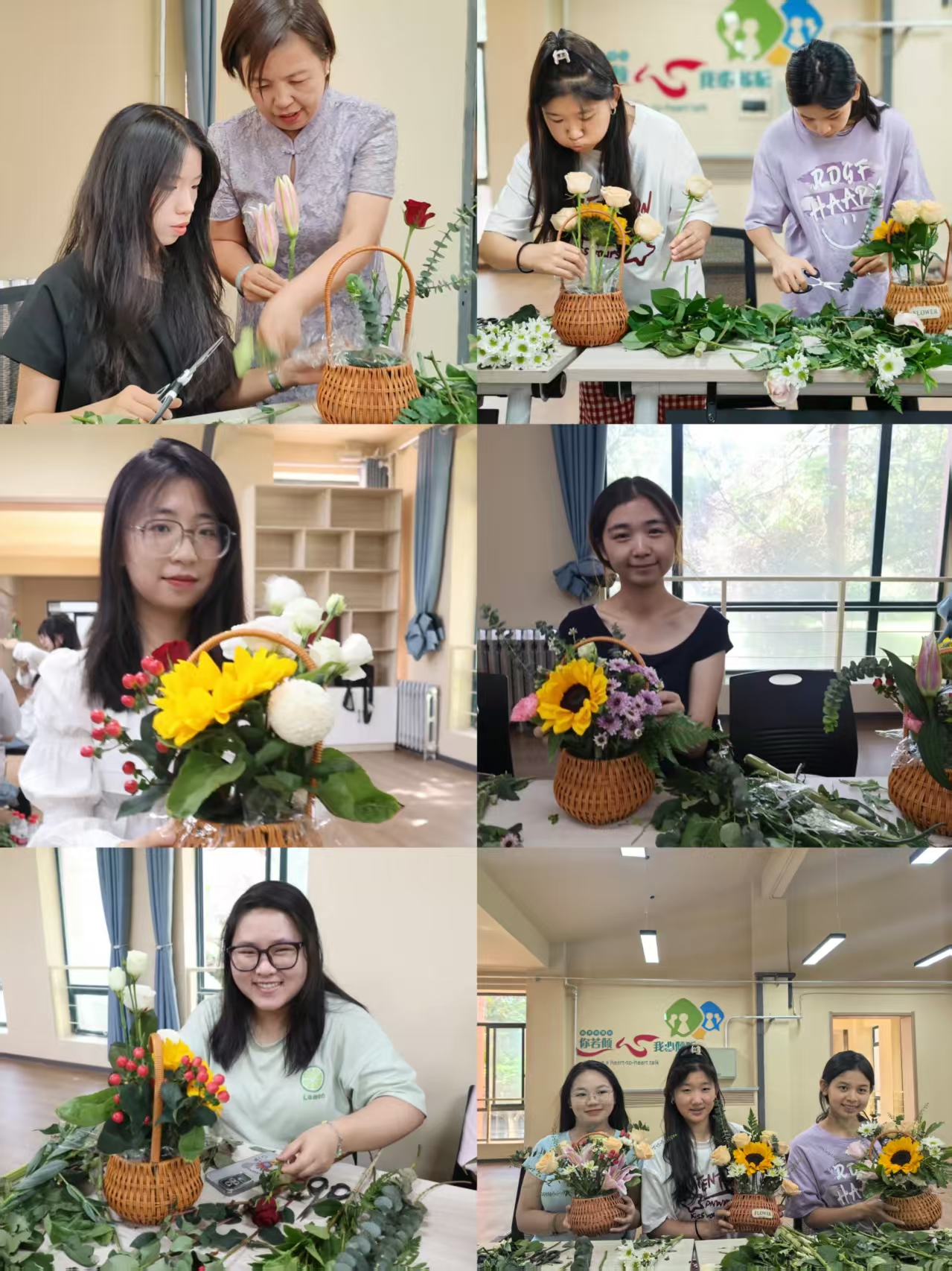 正值期末復習考試關鍵期,活動精準聚焦學生“壓力疊加期”需求,精心設計“聽花語”“插花療愈”“分享時間”三個沉浸式體驗環節,引領同學們步入花藝療愈之境。“聽花語”環節,正念冥想幫助同學們暫時忘掉煩心事,只關注眼前的一枝一葉,一花一世界。蔣倩老師引導同學們運用五感去沉浸式感受各類花材的生命力與獨特美感,學習如何通過鮮花表達內心細微的情感世界。“插花療愈”環節,鼓勵同學們自由創作。一籃籃獨一無二的花藝作品,宛如一頁頁鮮活的“心情日記”,無聲地完成心理修復與情緒釋放。在“分享時間”,不少同學主動分享自己作品背后的故事與感悟。2022級自動化專業馬思慧同學提到,看著自己親手完成的作品,即使不夠完美,也充滿了成就感。一束束親手創作的花藝,不僅是為備考學子特制的“減壓妙方”,更是盛放心靈的溫暖“容器”。
