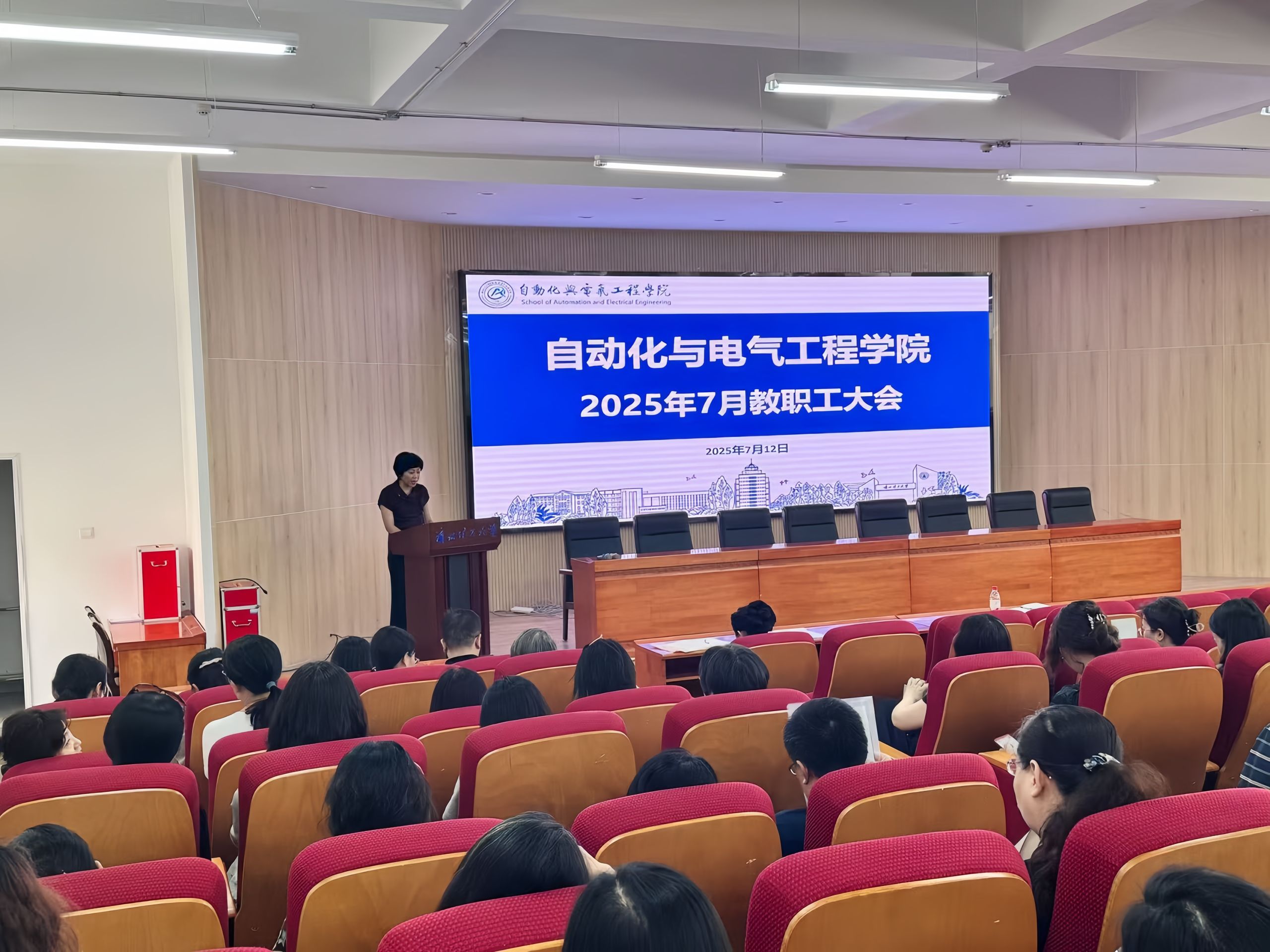 為全面總結2025年上半年工作成效,安排暑期及下半年重點任務,7月12日下午,自動化與電氣工程學院在舒卷樓D401召開學期末全體教職工大會。學院黨委書記劉佳姜、院長李二超等領導班子成員及全體教職工參加會議。大會由李二超主持。