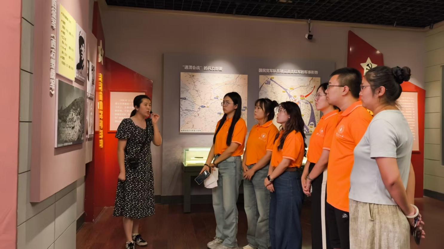 在靖遠(yuǎn)縣紅軍渡河戰(zhàn)役紀(jì)念館,講解員生動(dòng)講述了紅四方面軍在靖遠(yuǎn)強(qiáng)渡黃河、浴血奮戰(zhàn)的悲壯歷史,深刻感悟革命先輩的堅(jiān)定信仰與犧牲精神。實(shí)踐團(tuán)聯(lián)合靖遠(yuǎn)縣博物館開展“非遺衍紙頌英烈” 特色活動(dòng)。隊(duì)員們?cè)诜沁z老師的指導(dǎo)下,用衍紙技藝精心制作五角星、長城等紅色圖案,同步學(xué)習(xí) “愛國”“奮斗”“英雄” 等主題詞匯的標(biāo)準(zhǔn)普通話表達(dá),讓語言學(xué)習(xí)與紅色教育、非遺傳承實(shí)現(xiàn)深度交融,讓紅色精神在規(guī)范語言中代代相傳。