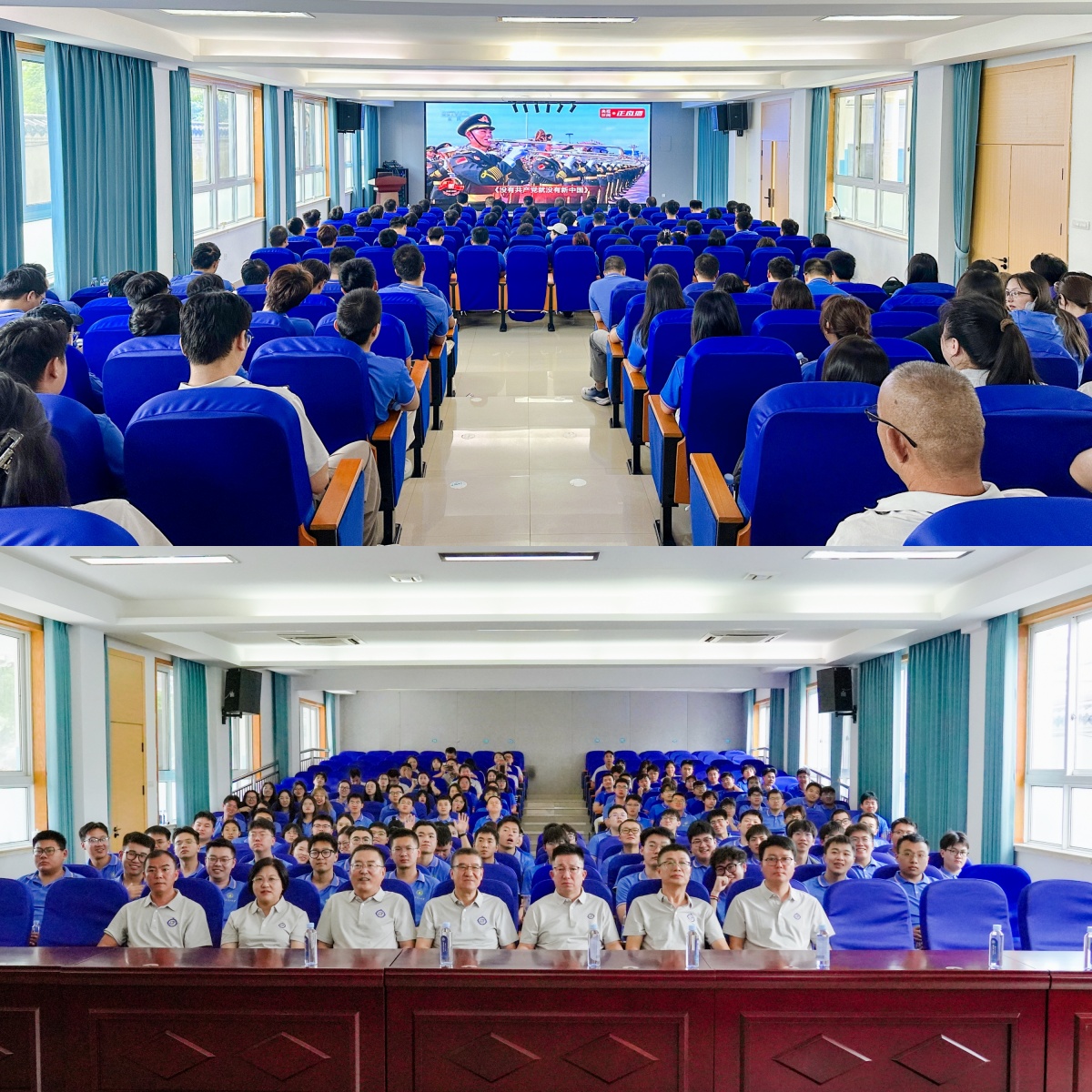 在研究院的大報告廳內,全體教職員工和研究生們聚集在屏幕前,共同見證這一莊嚴時刻。閱兵活動按照閱兵式、分列式兩個步驟進行,空中護旗梯隊由多型直升機組成多個編隊,以護衛(wèi)旗幟、編成字符、懸掛標語等方式,體現(xiàn)了在中國共產黨的領導下,國家日益繁榮昌盛、軍隊不斷發(fā)展壯大。天安門廣場上,45個方隊依次通過,代表著我軍制勝現(xiàn)代戰(zhàn)爭的強大能力。看著屏幕中先進的軍事裝備和整齊劃一的受閱方隊,在場師生員工無不為之動容,共同感受這份民族自豪與歷史使命,更感受到和平不易和祖國強大,愛國情懷油然而生。