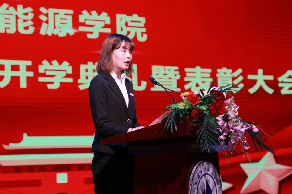 2017級(jí)學(xué)生代表王健同學(xué)結(jié)合自己的大學(xué)經(jīng)驗(yàn),分別從學(xué)習(xí)、生活等方面為新同學(xué)們給出了寶貴的意見,以此鼓勵(lì)新生度過一段不負(fù)自我、不負(fù)青春的大學(xué)時(shí)光,不斷從優(yōu)秀走向卓越,真正成長為經(jīng)世治國的棟梁之才。2019級(jí)新生代表李紅蕊同學(xué)發(fā)言,對(duì)今后大學(xué)生活確立目標(biāo),積極鉆研,奮發(fā)圖強(qiáng),努力做一名優(yōu)秀的工大學(xué)生。