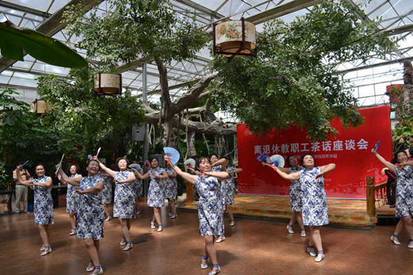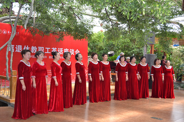 蘭州理工大學老年藝術團、老年舞蹈隊為老同事們獻上了精彩的歌舞表演,老同志們個個喜笑顏開,沉浸在喜氣洋洋的節日氣氛中。為感謝全體離退休老同志為學校發展所作的重要貢獻,離退辦特為全校離退休老同志定制了百年校慶紀念品。茶話會結束后,老同志們開心的領取了校慶紀念品,他們紛紛祝福母校明天更美好。