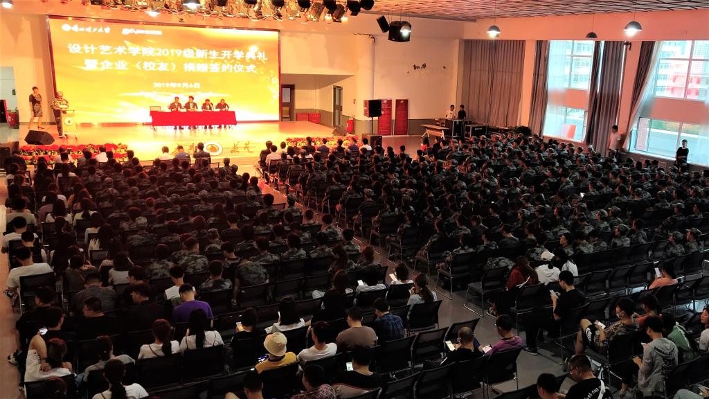 乘風遠航啟新程,春華秋實繪佳卷。9月6日,設計藝術學院2019級新生開學典禮暨企業(校友)簽約儀式于蘭工坪校區大學生活動中心拉開帷幕。本次儀式由設計藝術學院黨委副書記楊利玲主持,設計藝術學院黨委書記王正民、院長蘇建寧、副院長劉奔騰、副院長朱守會、各系系主任、新生班主任及全體輔導員參加儀式。