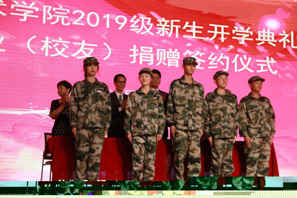 大會在雄壯的國歌聲中拉開帷幕,19級新生代表在表達入學激動心情的同時,也在學校百年華誕之際送上祝福,并由院領導為新生代表佩戴校徽。百年來,學校培育出了許多的優秀學子,他們在學校百年華誕之際回到了母校,為母校的教育事業添磚加瓦,為在校的優秀學生設立獎學金,鼓勵同學們努力學習,奮進求是。王書記代表學院與校友簽訂了雙方合作協議書,并對校友們的捐贈表達感謝。同時也表達了母校對校友們的祝愿,更歡迎校友們常回母校。