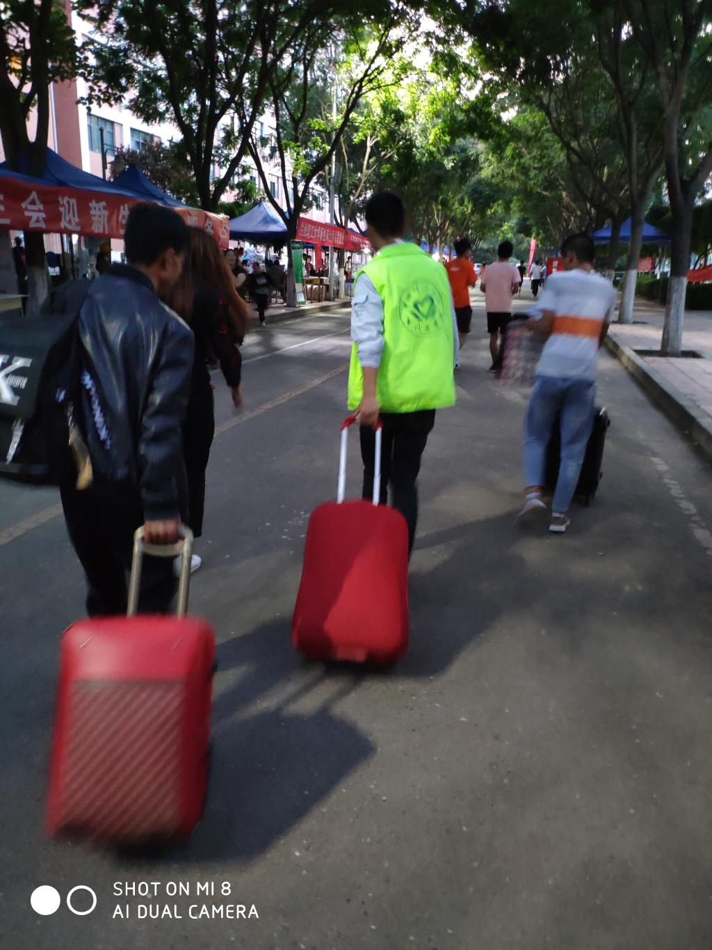 為了讓新生及家長對接待和安排的百分百的滿意,協會制定了詳細的入學安排作為指引輔助,志愿者站在體育館門前,接應下車的新生,全程陪同新生報名,以確保迎新工作順利完成。志愿者們帶領新生及家長,領取家校聯系卡、家長一封信和家長會邀請函,登記聯系電話,領取報道聯和住宿聯,出示錄取通知書、書費單據和學費代扣代繳單據,引領他們報道注冊,領取學生卡。迎新工作如火如荼,到處都是忙碌的身影。志愿者們不厭其煩的回答新生及家長提出的各種問題,主動幫助他們從放行李,提供熱水,新生們細聲叫著學長學姐,老生們也開心的介紹這介紹那。在迎新高峰期,人頭攢動,秩序井然。